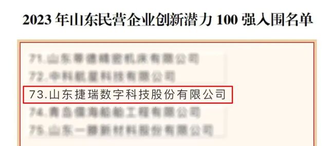 近日,山東省工商聯公布了2023年山東民營企業100強系列榜單,捷瑞數字憑借在數字孿生、工業互聯網領域的創新實踐,成功入圍“2023年山東民營企業創新潛力100強”榜單。