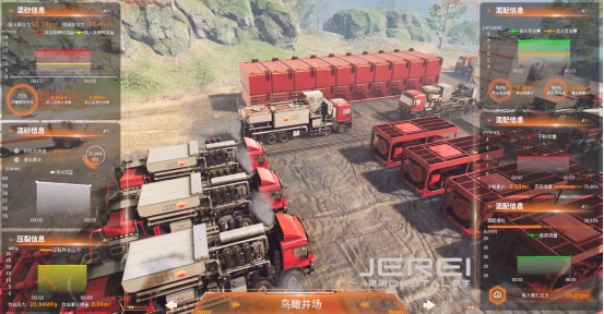 壓裂作業的復雜性決定了單一設備模擬無法滿足培訓需求。捷瑞數字的油田設備模擬器通過“設備-井場-井下”三級聯動設計,實現了從地面設備操作到地下裂縫擴展的全鏈條仿真。